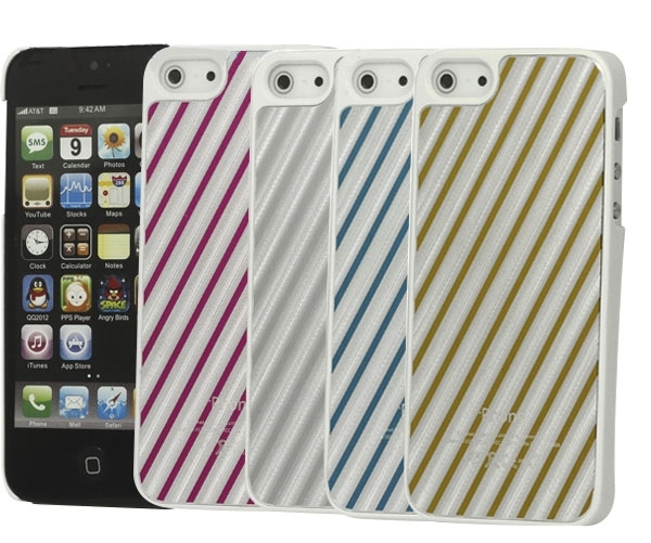 Пластиковая накладка с алюминиевой вставкой с узором "Диагонали" для Apple iPhone 5/5S/SE Серебро