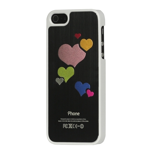 Пластиковая накладка с алюминиевой вставкой с узором "Разноцветные сердца" для iPhone 5/5S Черный