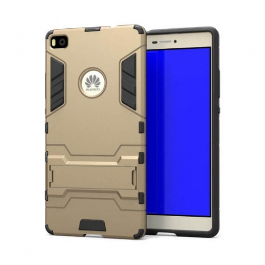 Ударопрочный чехол-подставка Transformer для Huawei P8 Lite (2017) с мощной защитой корпуса Золотой / Champagne Gold