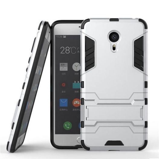 Ударопрочный чехол-подставка Transformer для Meizu Pro 6 с мощной защитой корпуса Серебряный / Satin Silver