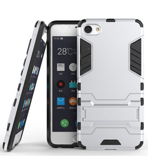 Ударопрочный чехол-подставка Transformer для Meizu U20 с мощной защитой корпуса Серебряный / Satin Silver