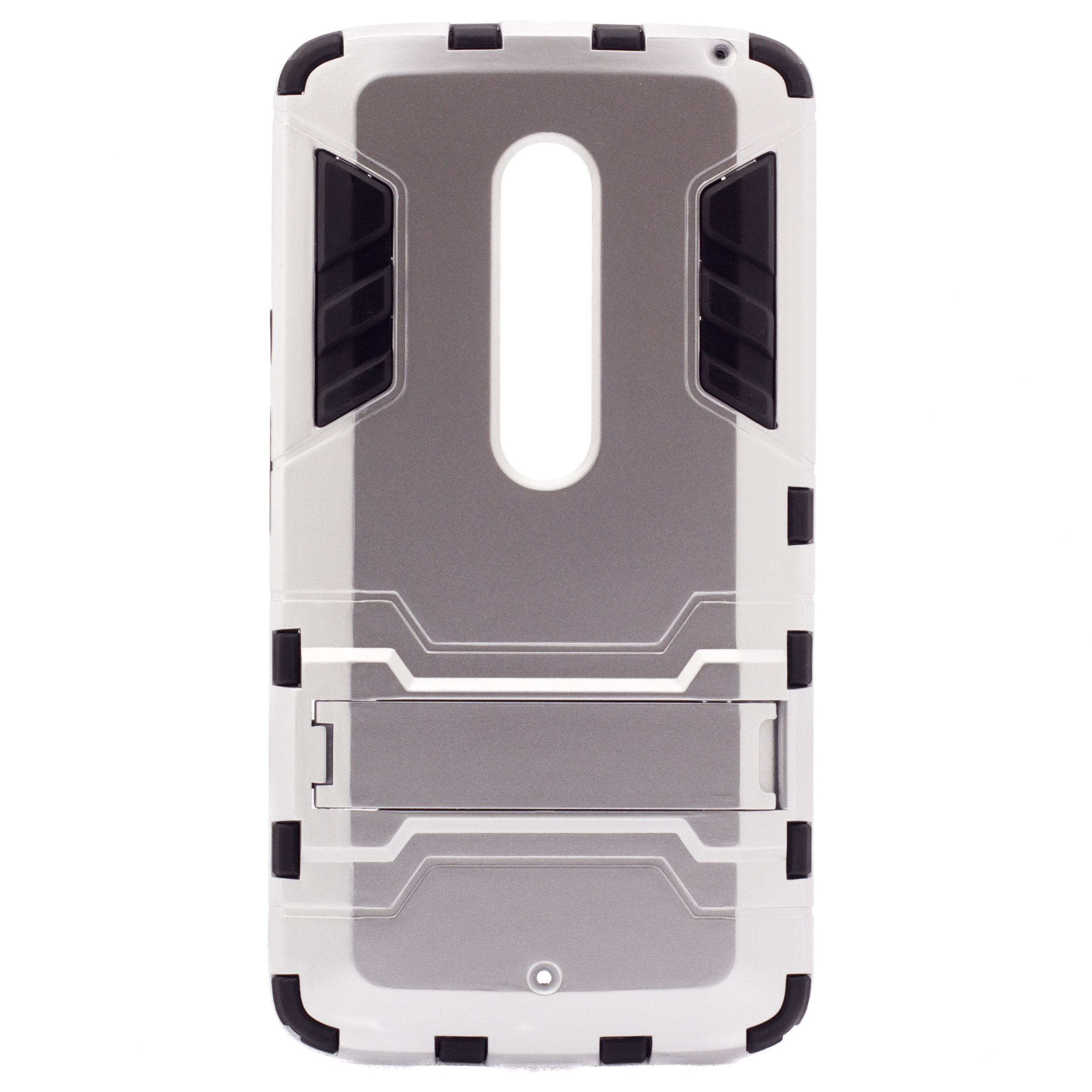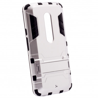 Ударопрочный чехол-подставка Transformer для Motorola Moto X Play (XT1562) с мощной защитой корпуса Серебряный / Satin Silver