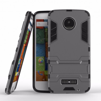 Ударопрочный чехол-подставка Transformer для Motorola Moto Z Force с мощной защитой корпуса Серый / Metal slate