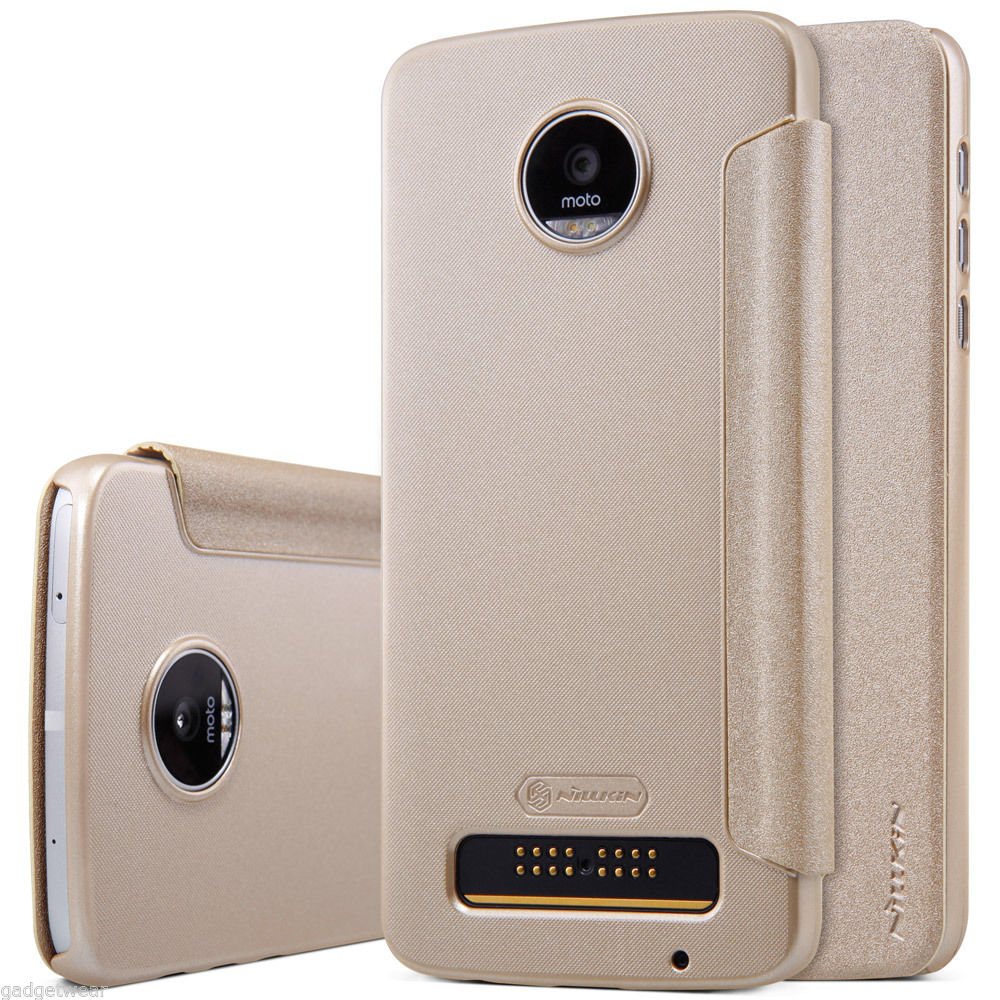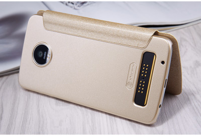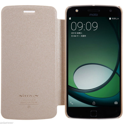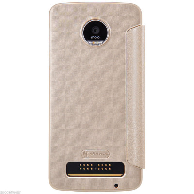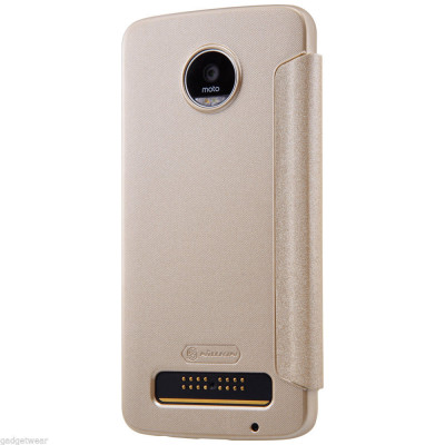 Кожаный чехол (книжка) Nillkin Sparkle Series для Motorola Moto Z Play Золотой