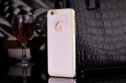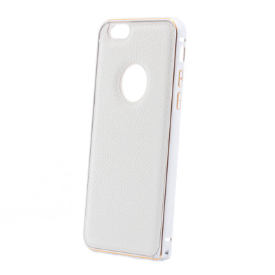 Металлический бампер с кожаной вставкой для Apple iPhone 6/6s (4.7") Белый
