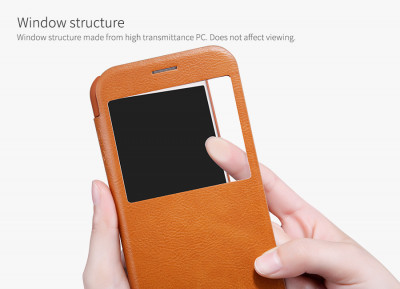 Кожаный чехол (книжка) Nillkin Qin Series для Samsung A320 Galaxy A3 (2017) Коричневый с окошком