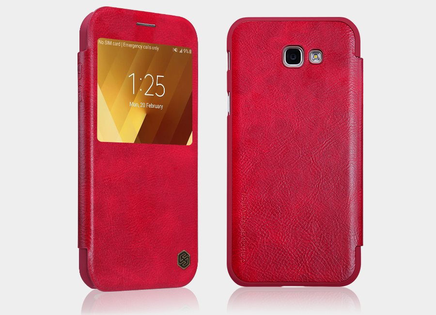 Кожаный чехол (книжка) Nillkin Qin Series для Samsung A320 Galaxy A3 (2017) Красный с окошком