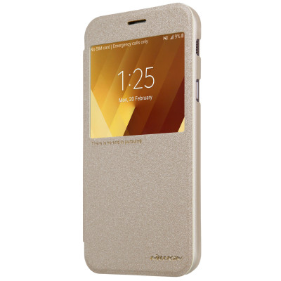 Кожаный чехол (книжка) Nillkin Sparkle Series для Samsung A320 Galaxy A3 (2017) Золотой