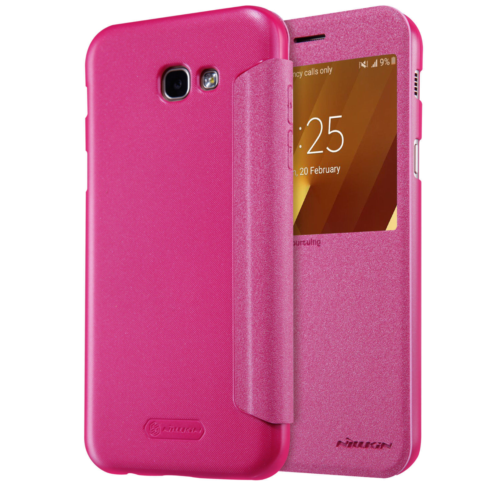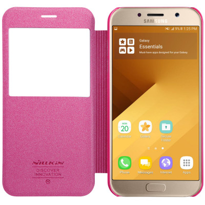 Кожаный чехол (книжка) Nillkin Sparkle Series для Samsung A320 Galaxy A3 (2017) Розовый