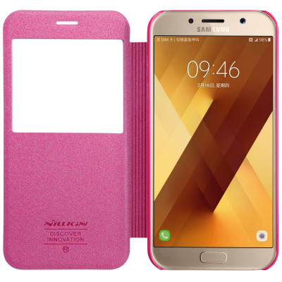 Кожаный чехол (книжка) Nillkin Sparkle Series для Samsung A520 Galaxy A5 (2017) Розовый