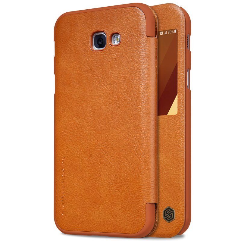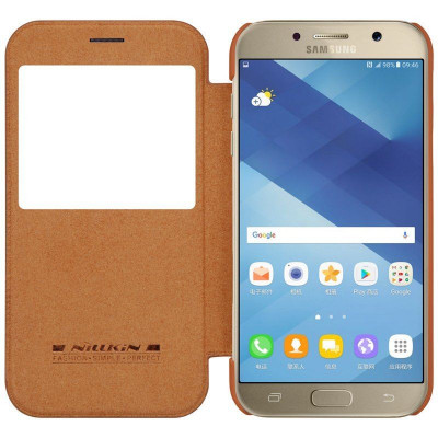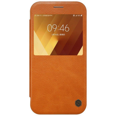 Кожаный чехол (книжка) Nillkin Qin Series для Samsung A720 Galaxy A7 (2017) Коричневый с окошком