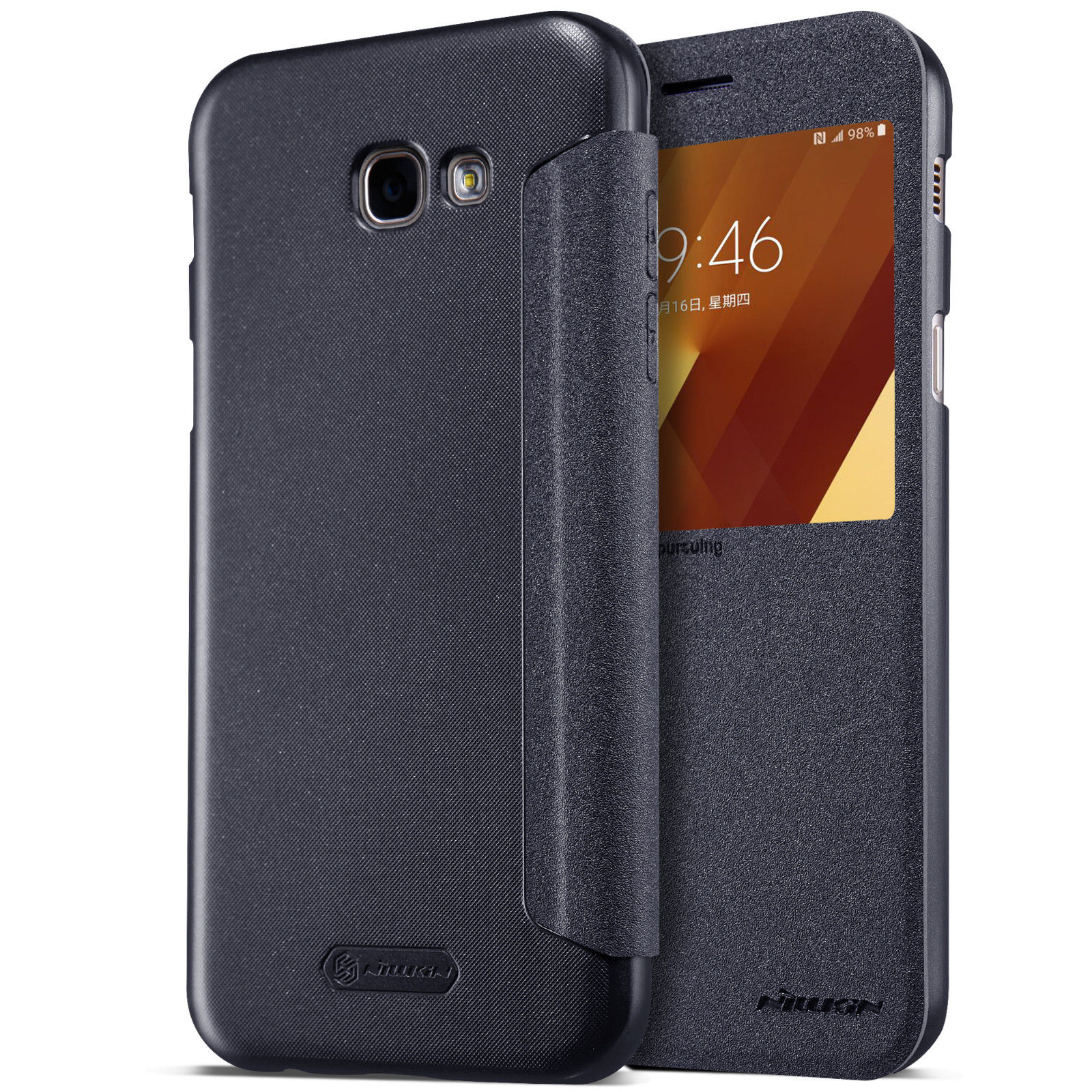 Кожаный чехол (книжка) Nillkin Sparkle Series для Samsung A720 Galaxy A7 (2017) Черный