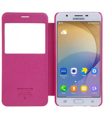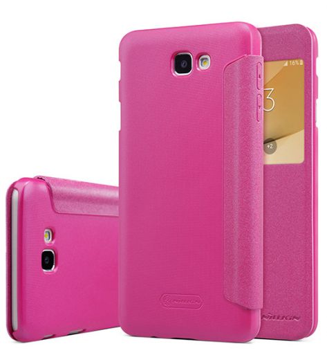 Кожаный чехол (книжка) Nillkin Sparkle Series для Samsung G610F Galaxy J7 Prime (2016) Розовый