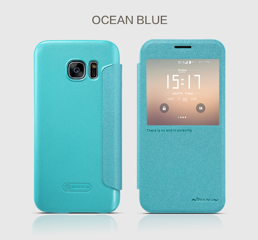 Кожаный чехол (книжка) Nillkin Sparkle Series для Samsung G930F Galaxy S7 Бирюзовый