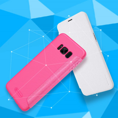 Кожаный чехол (книжка) Nillkin Sparkle Series для Samsung G955 Galaxy S8 Plus Розовый
