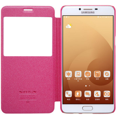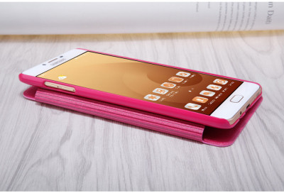 Кожаный чехол (книжка) Nillkin Sparkle Series для Samsung Galaxy C9 Pro Розовый