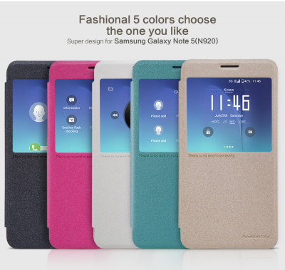Кожаный чехол (книжка) Nillkin Sparkle Series для Samsung Galaxy Note 5 Розовый