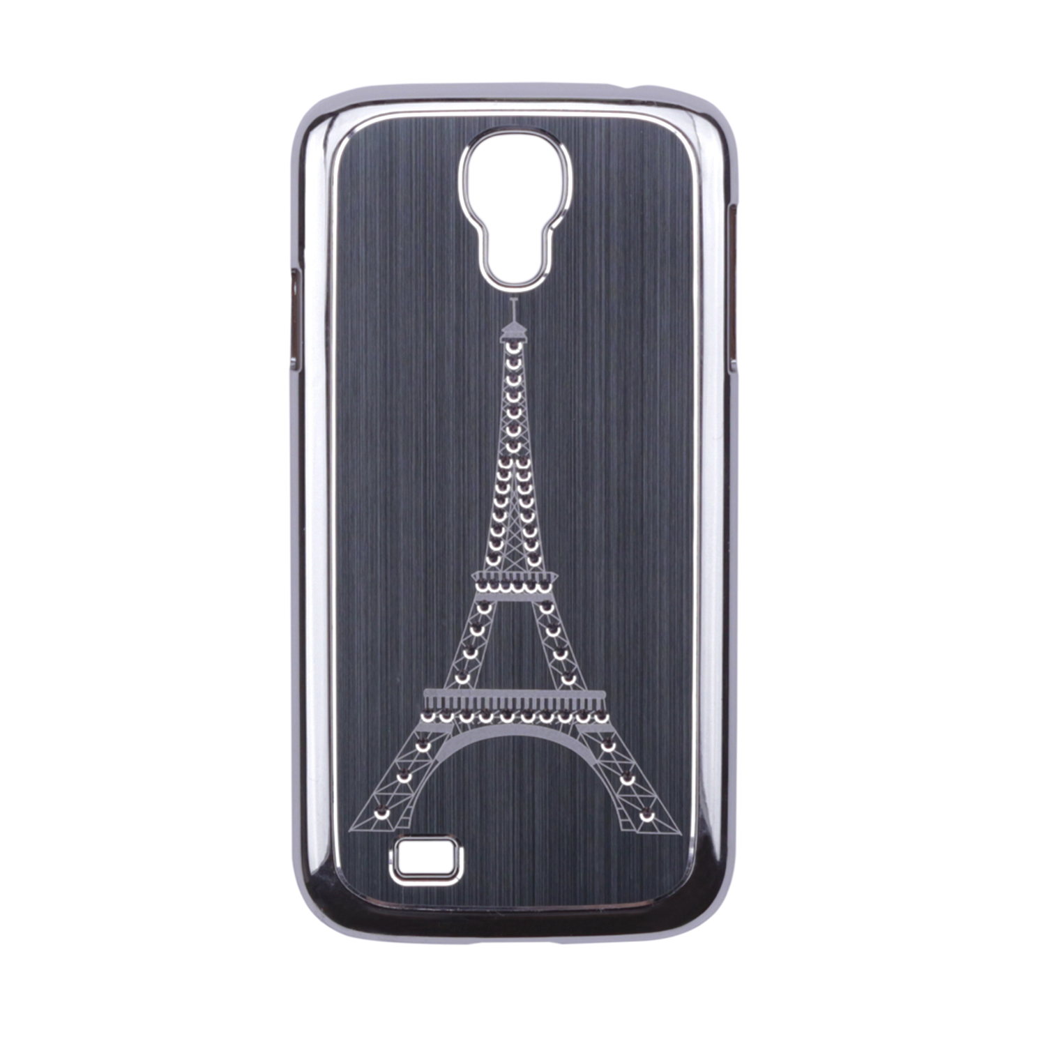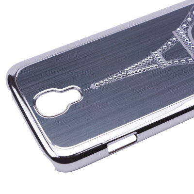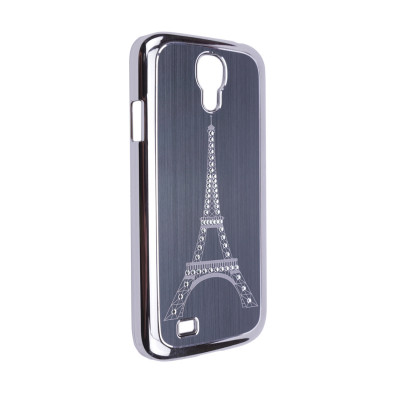 Пластиковая накладка с мат. алюм. вставкой и стразами "Эйфелева башня" для Samsung i9500 Galaxy S4 Серебряный