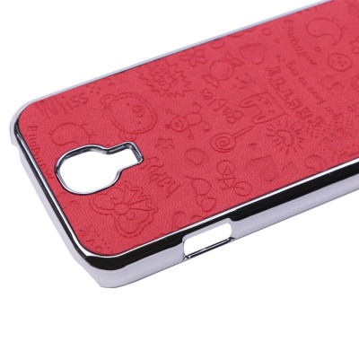 Пластиковая накладка с тиснением "детские рисунки" для Samsung i9500 Galaxy S4 Красный