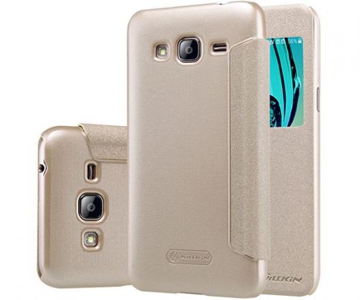 Кожаный чехол (книжка) Nillkin Sparkle Series для Samsung J320F Galaxy J3 (2016) Золотой