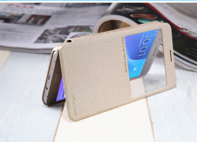 Кожаный чехол (книжка) Nillkin Sparkle Series для Samsung J710F Galaxy J7 (2016) Золотой