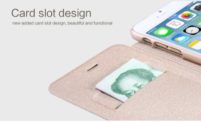 Кожаный чехол (книжка) Nillkin Sparkle Series для Apple iPhone 6/6s plus (5.5") Золотой