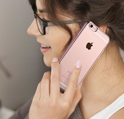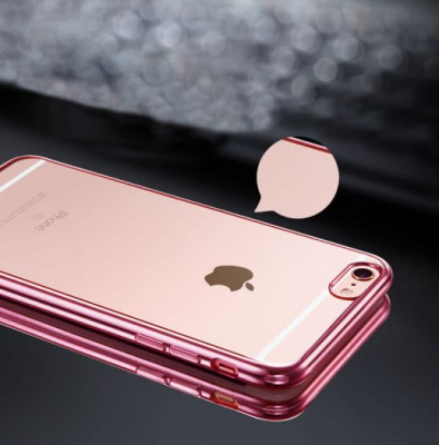 Прозрачный силиконовый чехол для Apple iPhone 6/6s plus (5.5") с глянцевой окантовкой Розовый