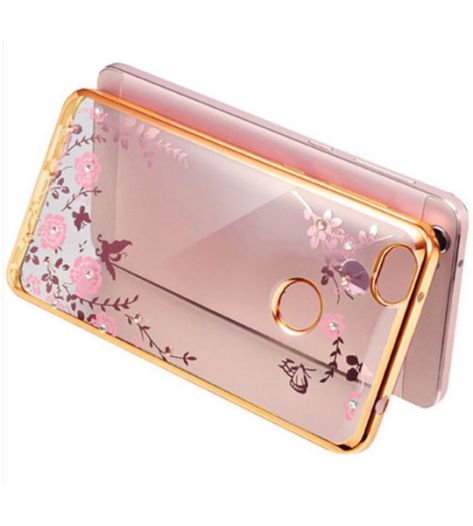 Прозрачный чехол с цветами и стразами для Xiaomi Mi Max с глянцевым бампером Розовый золотой/Розовые цветы