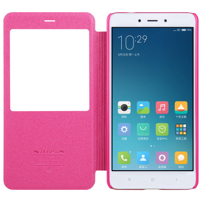 Кожаный чехол (книжка) Nillkin Sparkle Series для Xiaomi Redmi Note 4 Розовый