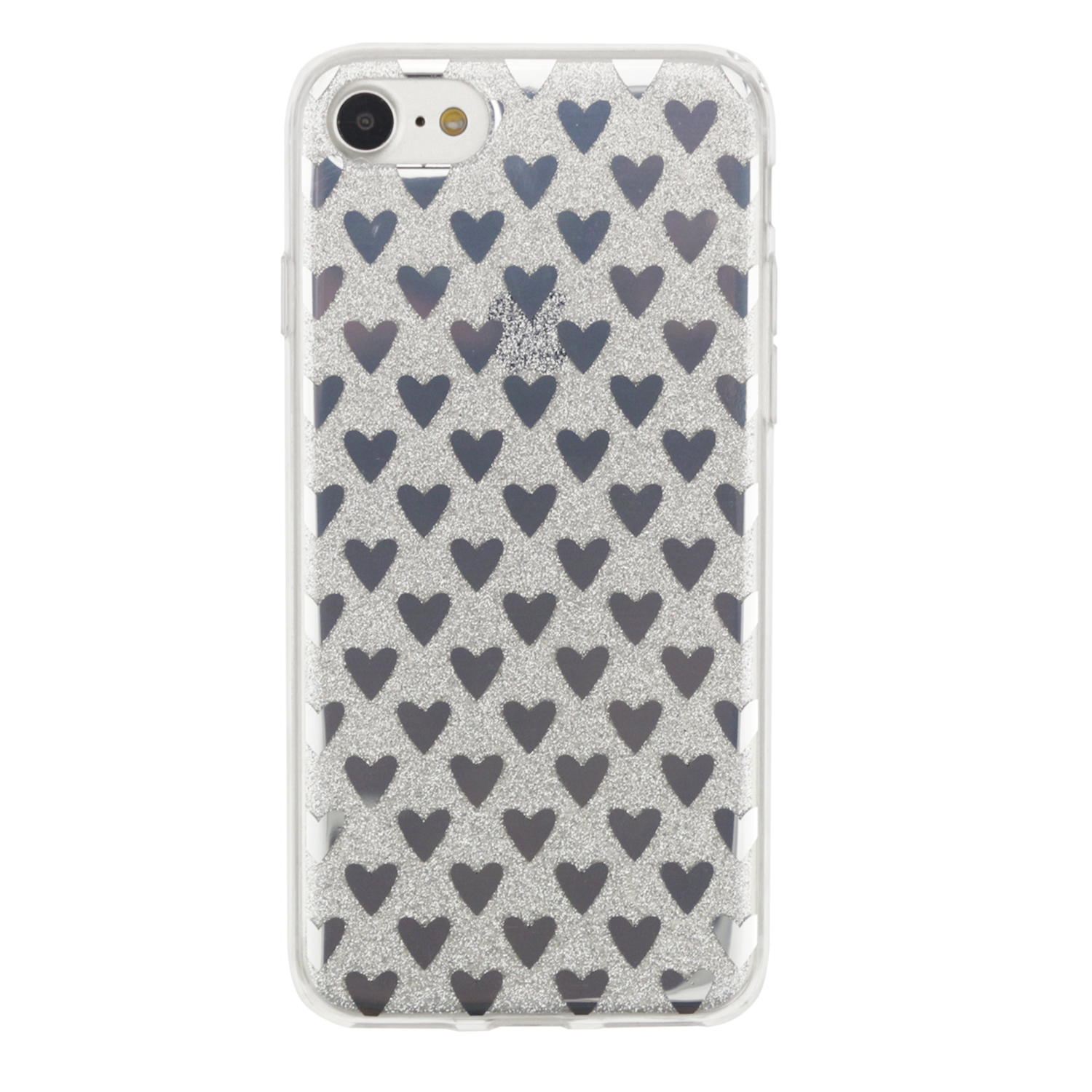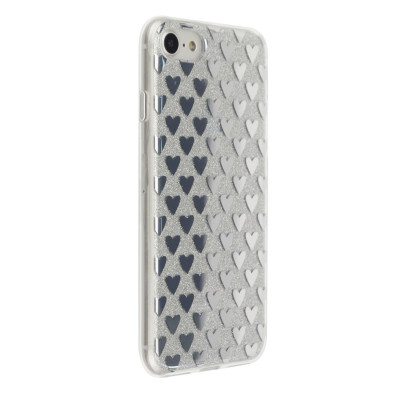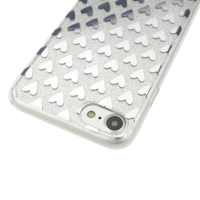 Cияющий TPU чехол с сердечками для Apple iPhone 7 (4.7") Серебряный