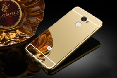 Металлический бампер с акриловой вставкой с зеркальным покрытием для Xiaomi Redmi 4 Золотой