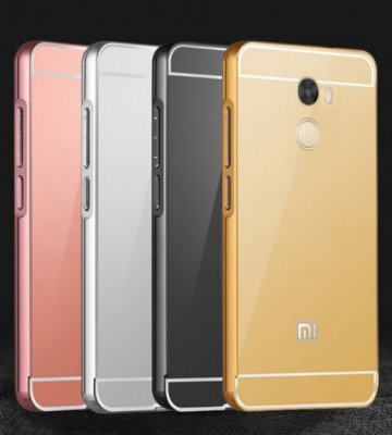 Металлический бампер с акриловой вставкой с зеркальным покрытием для Xiaomi Redmi 4 Золотой