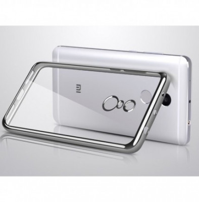 Прозрачный силиконовый чехол для Xiaomi Redmi 4 с глянцевой окантовкой Серебряный