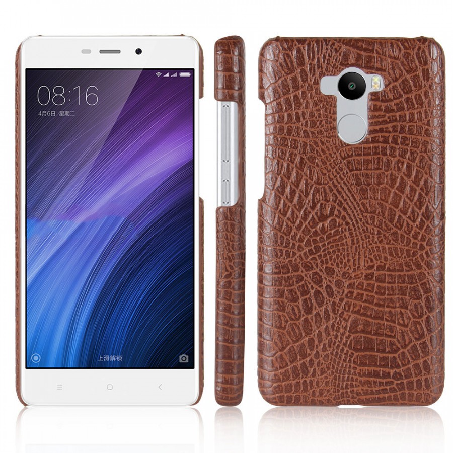 Кожаный чехол-накладка с имитацией кожи крокодила для Xiaomi Redmi 4 Коричневый