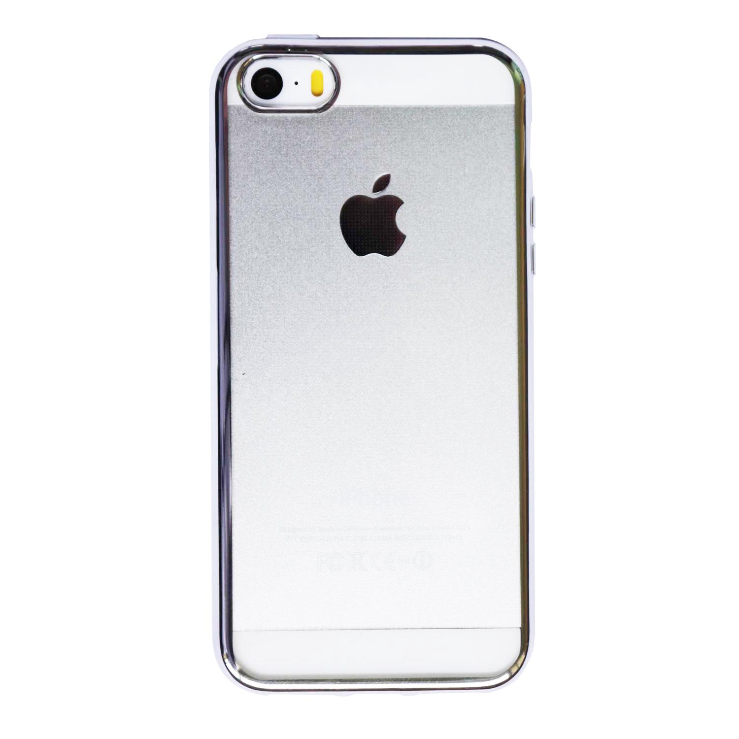 Прозрачный силиконовый чехол для Apple iPhone 5/5S/SE с глянцевой окантовкой Серебряный