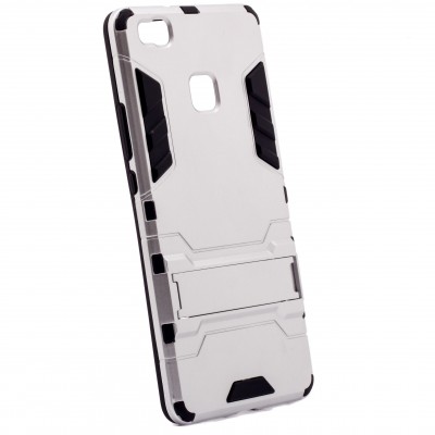 - Ударопрочный чехол-подставка Transformer для Huawei P9 Lite с мощной защитой корпуса Серебряный / Satin Silver