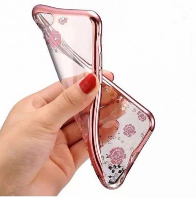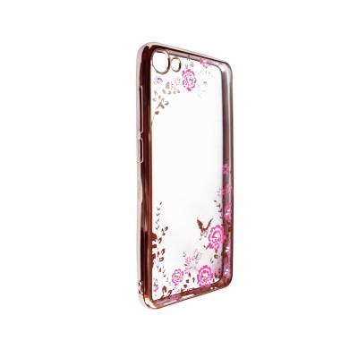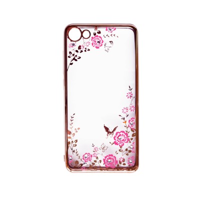 Прозрачный чехол с цветами и стразами для Meizu U10 с глянцевым бампером Розовый золотой/Розовые цветы