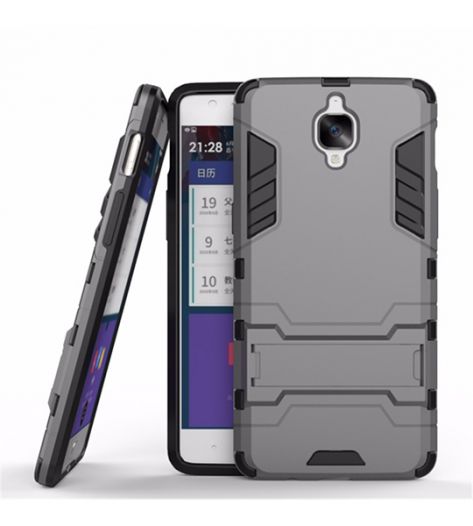 Ударопрочный чехол-подставка Transformer для OnePlus 3 / OnePlus 3T с мощной защитой корпуса Металл / Gun Metal