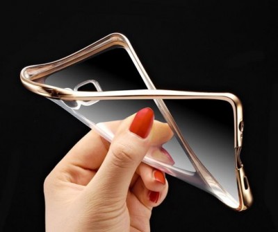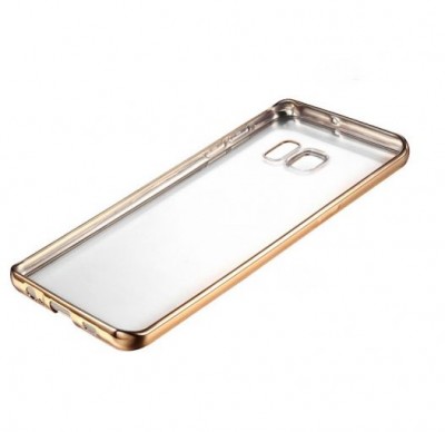 Прозрачный силиконовый чехол для Samsung G925F Galaxy S6 Edge с глянцевой окантовкой Золотой