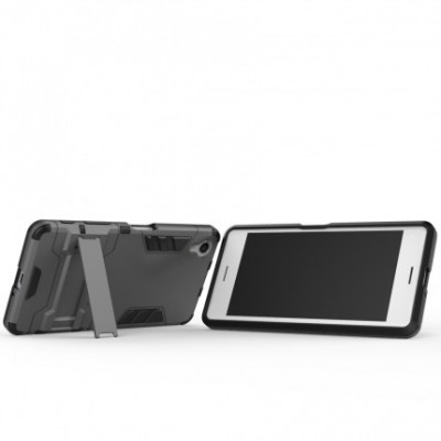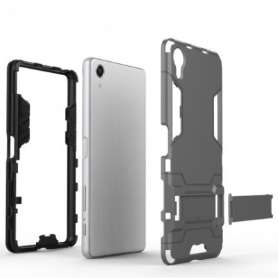 Ударопрочный чехол-подставка Transformer для Sony Xperia XA / XA Dual с мощной защитой корпуса Серый / Metal slate