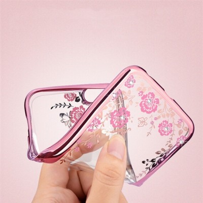 Прозрачный чехол с цветами и стразами для Xiaomi Mi 6 с глянцевым бампером Розовый золотой/Розовые цветы