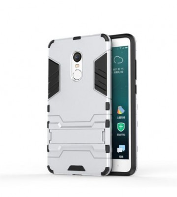 - Ударопрочный чехол-подставка Transformer для Xiaomi Redmi Note 4 / Note 4X с мощной защитой корпуса Серебряный / Satin Silver