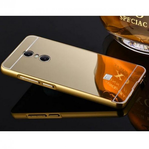 Металлический бампер с акриловой вставкой с зеркальным покрытием для Xiaomi Redmi Note 4X Золотой