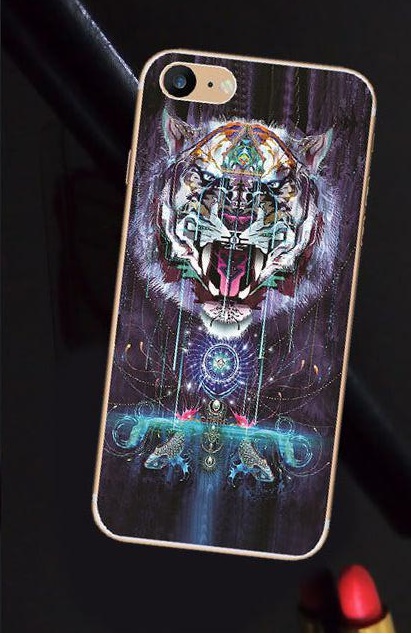 Тонкий силиконовый чехол "Космические животные" с прозрачными краями для Apple iPhone 7 (4.7") Тигр